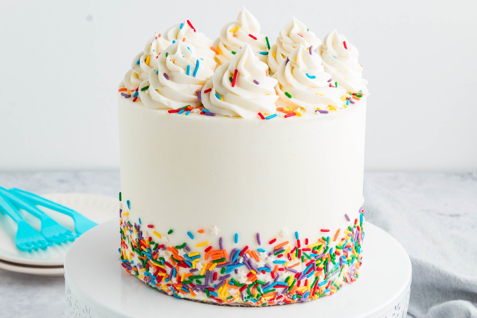 Best for: Birthday cakes, piped decorations, or layering sprinkles/drips on top