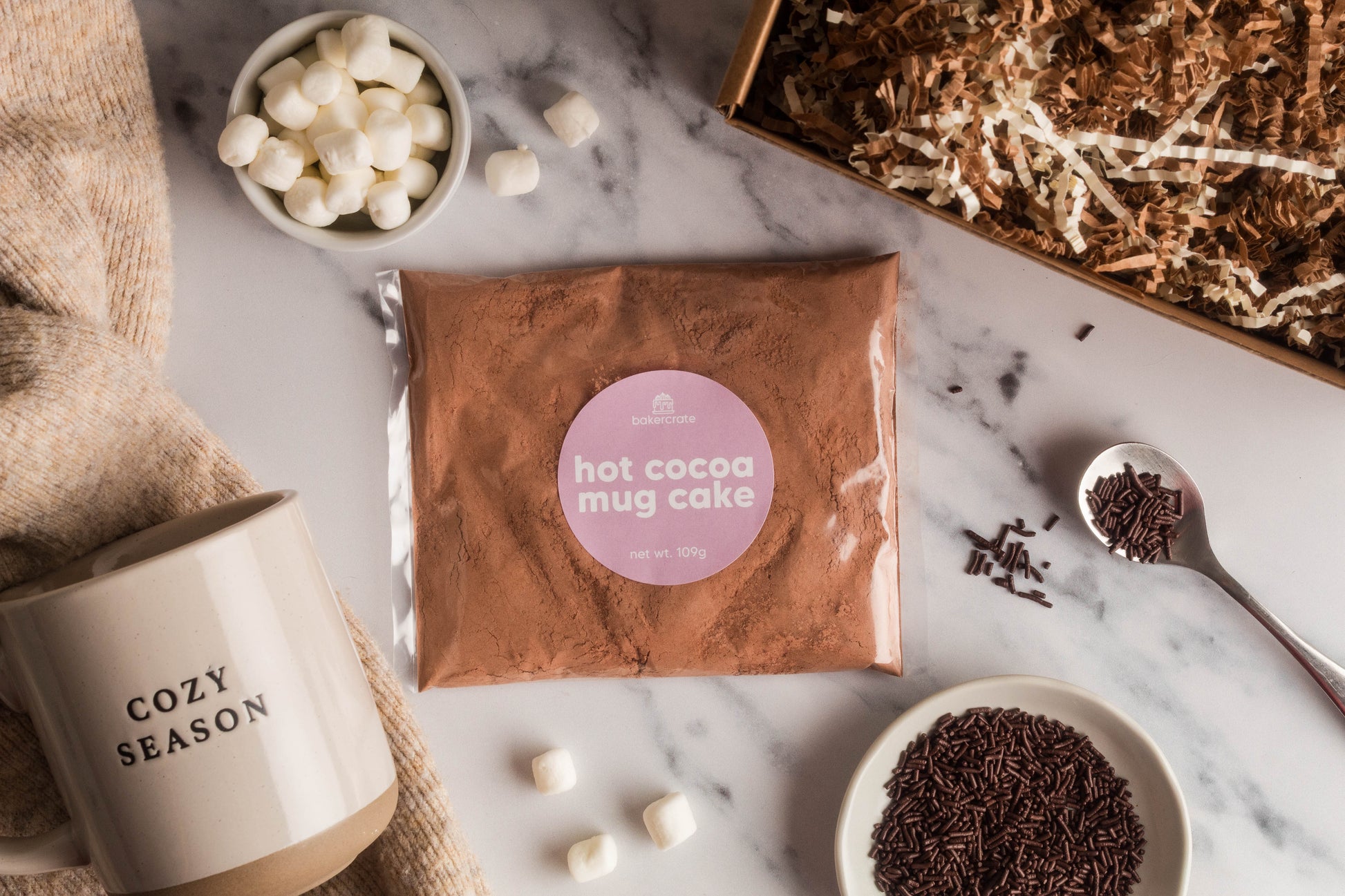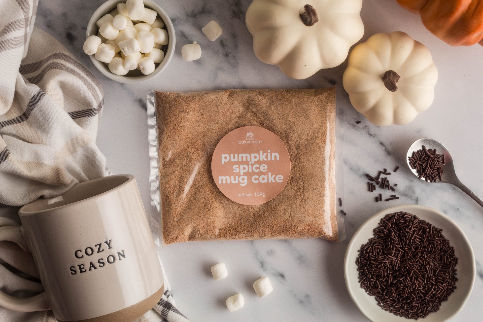 Our Mug Cake Kits lets you bake a soft, gooey single-serve cake right in the mug — no oven or stress required. Choose Hot Cocoa or Pumpkin Spice, add milk and oil, microwave, and enjoy a warm treat topped with marshmallows and festive sprinkles. Each kit includes a reusable ceramic mug, spoon, toppings and pre-measured mix — perfect for gifting, holidays, or a little self-care at home.